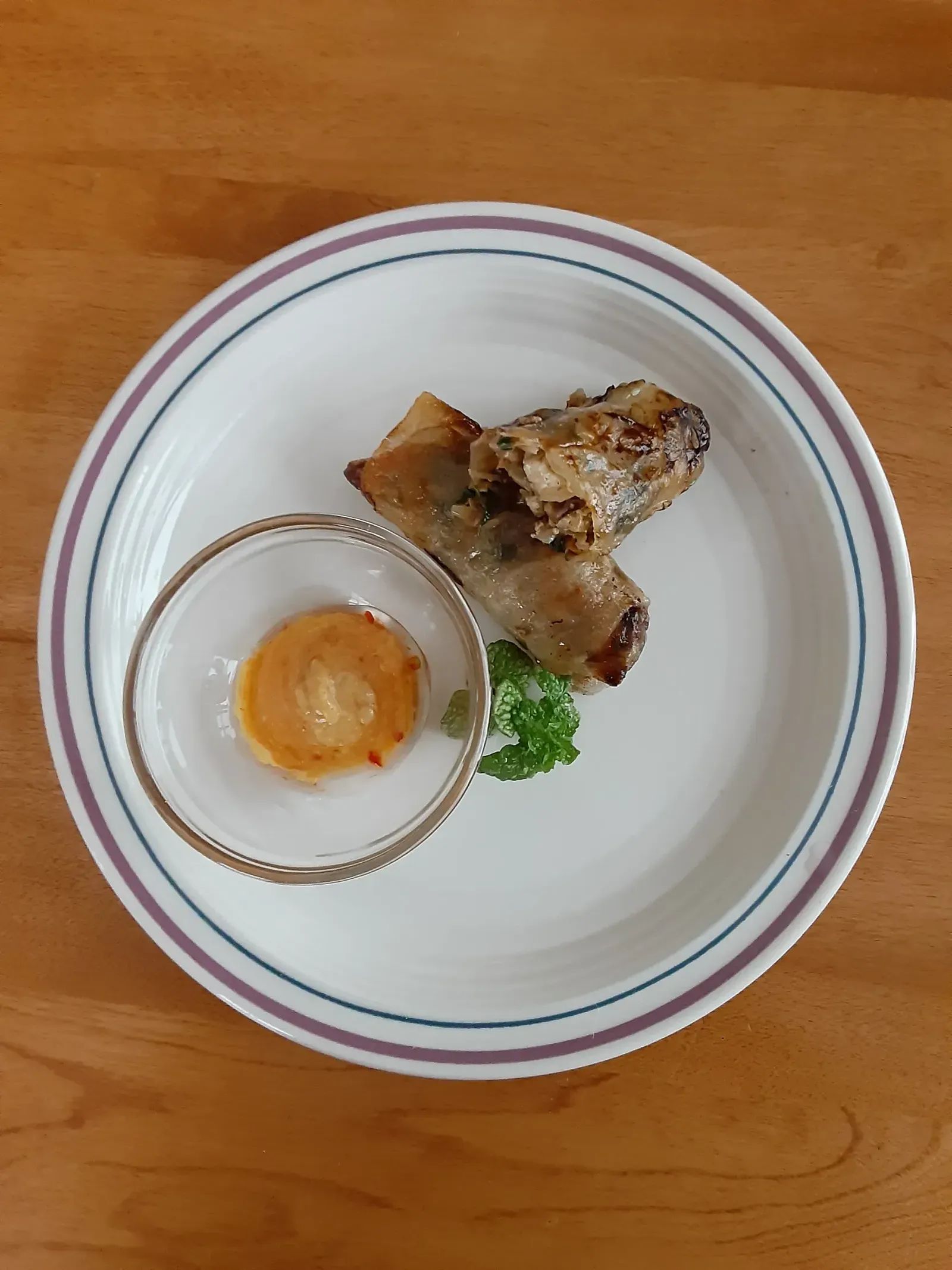 (Note: You will need packaged rice wraps found in the international section of your market)